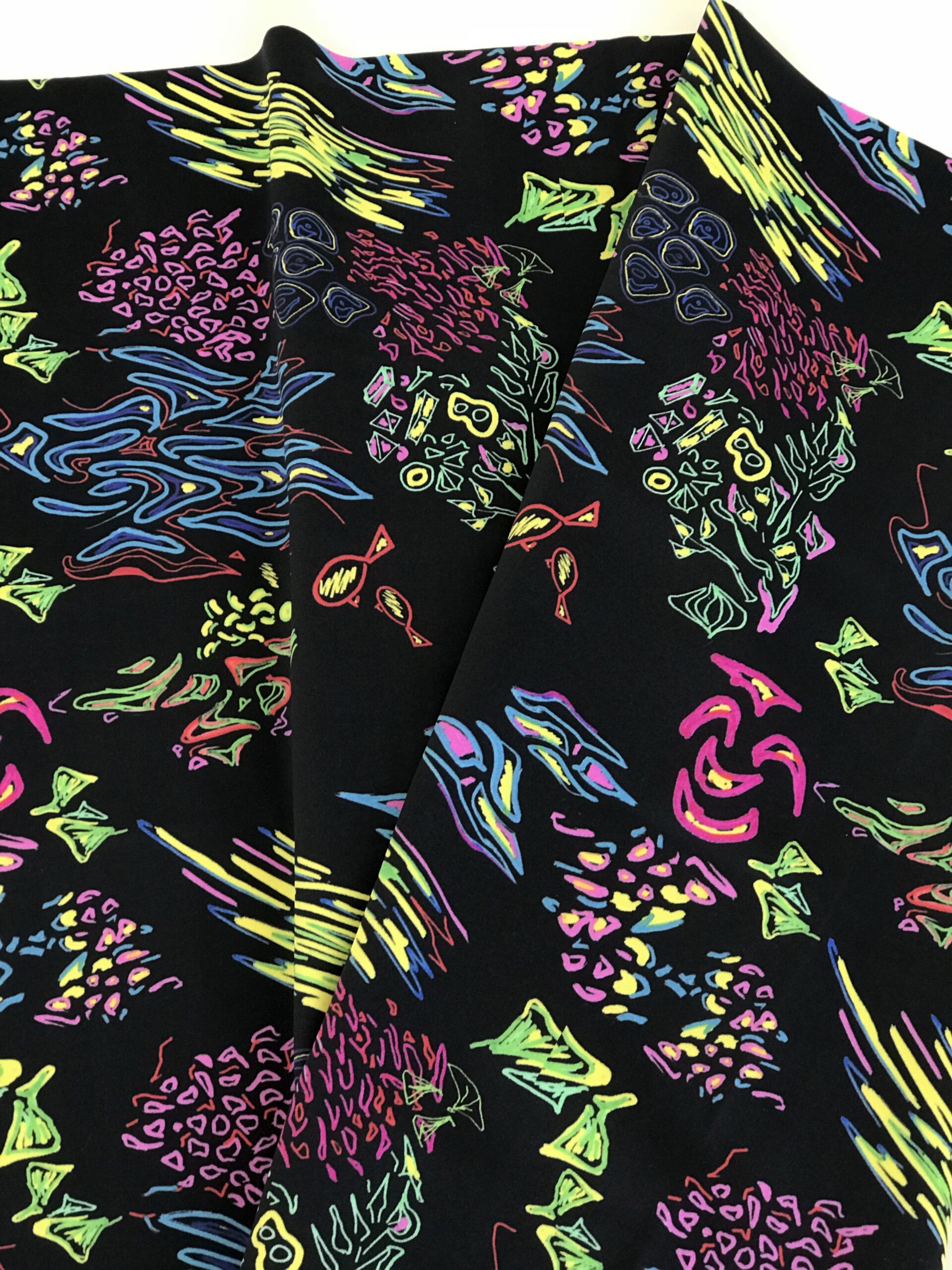 El desarrollo de estampados textiles me ha permitido experimentar en el lenguaje de la indumentaria. Cada diseño es desarrollado teniendo en cuenta la colección, la prenda, la técnica de estampación y el tejido.
